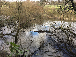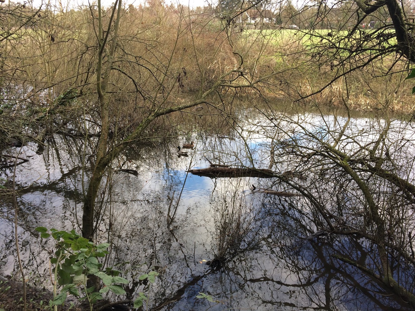 The cut was a bit more lively with several pairs of Mallard guarding their own stretch of the stream, not at all sociable. A surprise was to hear the thrip of a Teal, not immediately visible but there all the same behind some branches. This was the first time I’d ever seen or heard them here.