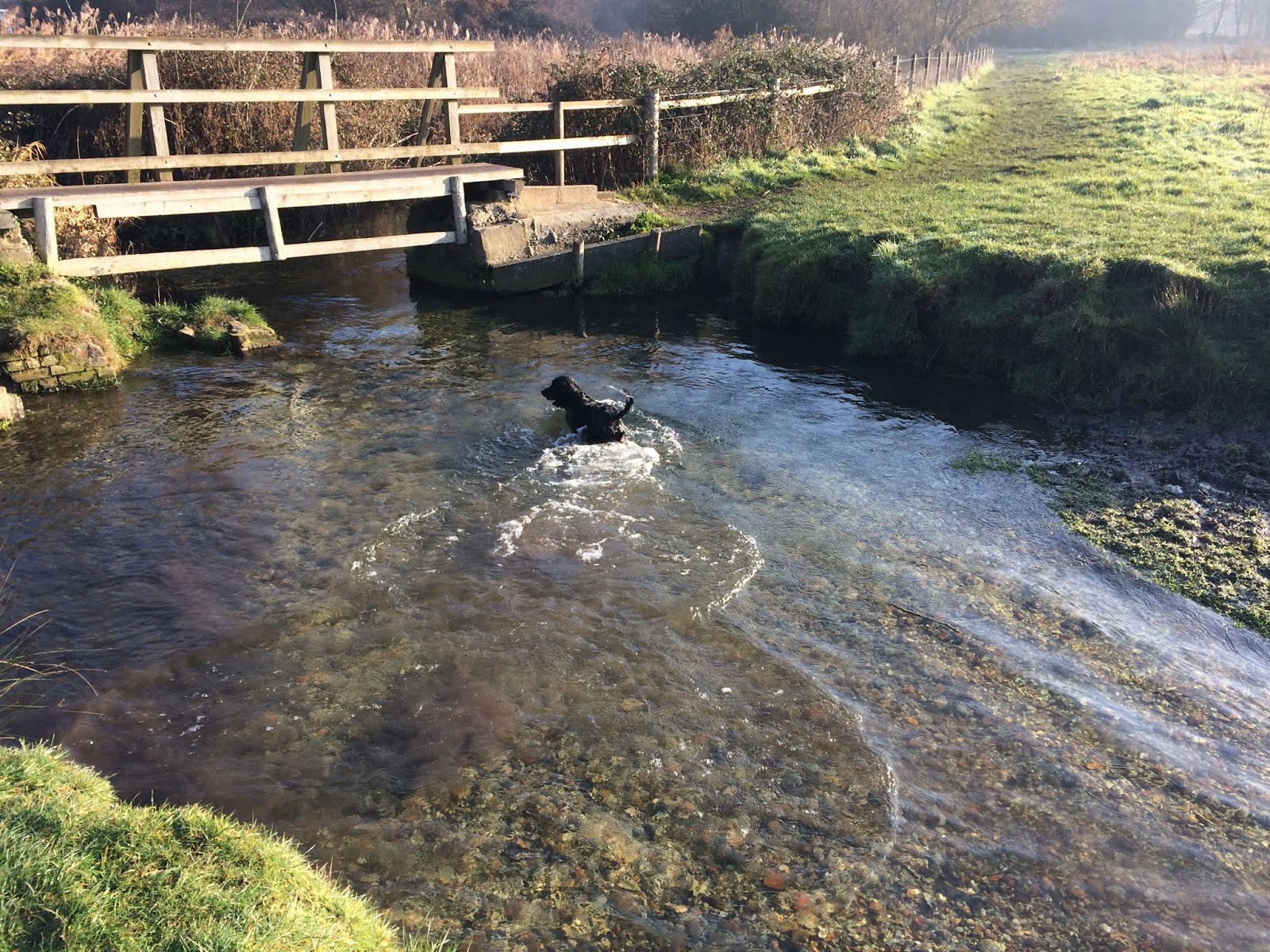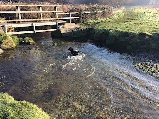 An exhilarating walk, such a pleasure to see so many wildfowl that were so active. Fortunately Bonnie behaved quite well hardly scaring any of them way; however the stream was irrisistable!