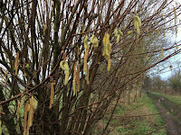 There were plenty of catkins about that had grown in length, another sign of spring coming. Clumps of daffodils were also growing strongly, the buds showing a hint of yellow but non open yet.