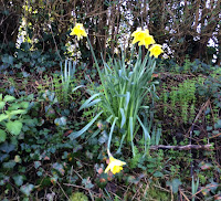 On the road close to the pond were bright splashes of yellow where a few early flowering daffodils had come out; well in advance of most. Nearby were thick clumps of snowdrops and more bright colours of primrose and crocus; so different from the past few months!