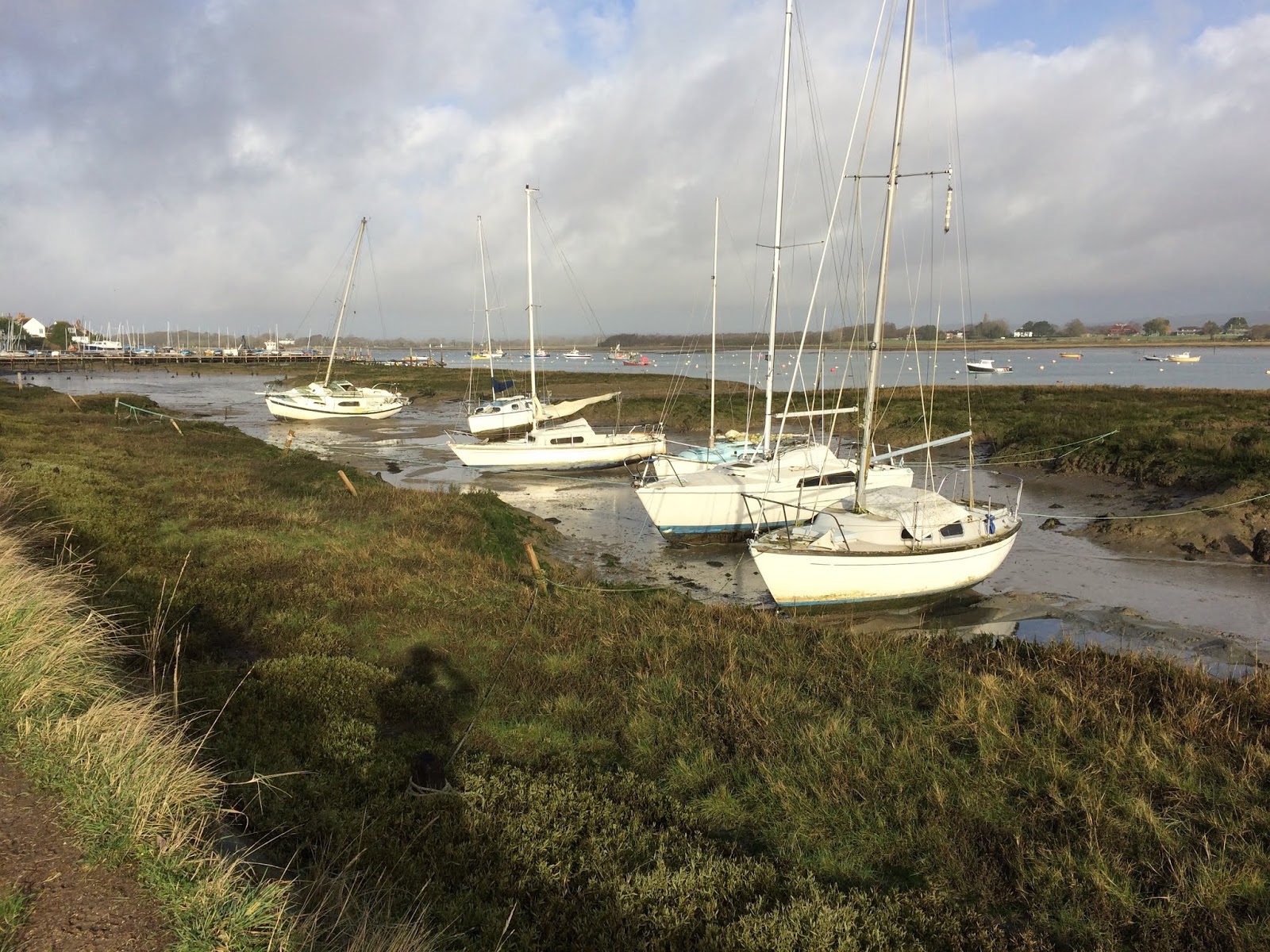 Looking so bright in the sunshine were a line of yachts well secured in mud berths. Safely behind a bank of mud they’d be snug in the wildest of winter storms; the traditional (and cost effective!) way of keeping a boat over winter.
