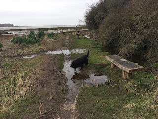 There had been heavy rain during the night but there was a short break in the weather before the main part of Storm Dennis would strike later in the afternoon. Low tide and lots to do so the short walk around Bosham Hoe was in order.