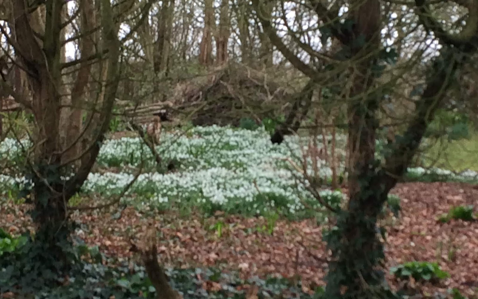 Walking through the fields this glorious patch of snowdrops came into view; clearly cultivated but in a rather attractive wood appearing like bluebells to carpet the ground. Not much else to see unfortunately.