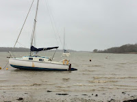 The sea was quite rough, a bilge keel yacht had just appeared sitting on the mud close to the clubhouse. It’s not a usual mooring so I assume the owner had experienced difficulties. Maybe it had broken free from it’s usual mooring as several boats had done in Portsmouth Harbour recently.