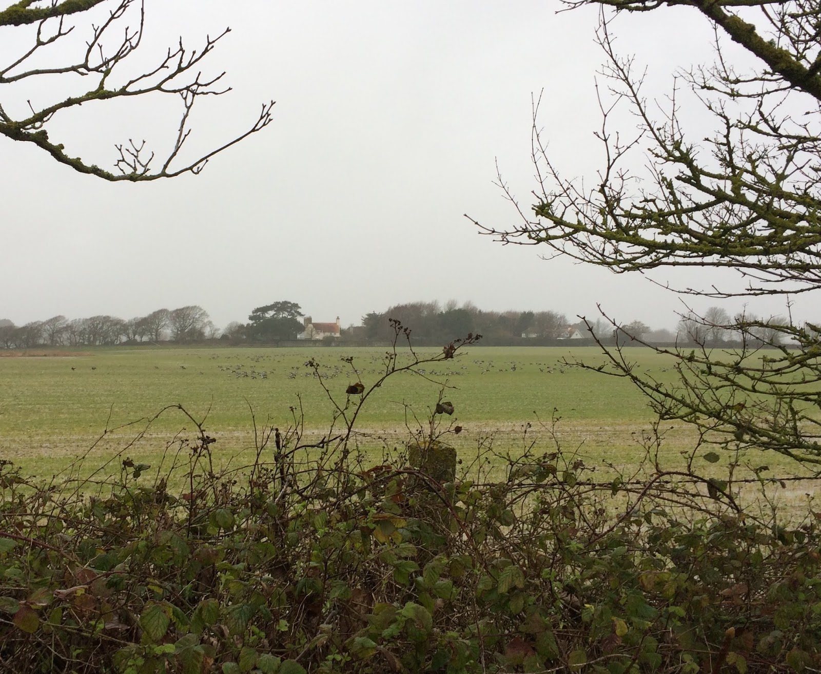 We’re the only ones at Dell Quay, walking along the flooded lane with the wind right on the nose was hard work. It seems that the birds thought so too with large numbers of geese and a few Shelduck sitting in a relatively sheltered are on the field nearby. It felt bleaker than the picture shows with showers of drizzle crossing, almost horizontal.