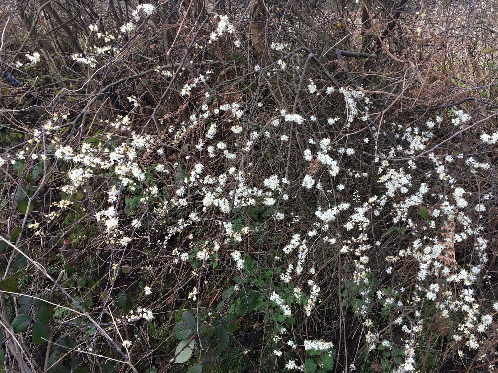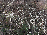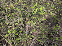 In the hedgerows some Blackthorn bushes had been in flower for a while; now they were all out. On this one there was even a bee foraging for some nectar, he must have enjoyed getting out, probably the first time in quite a while. Alongside the Blackthorn were Hawthorn bushes just starting to come in leaf adding a green tinge to the hedgerow. Blackthorn flower before the