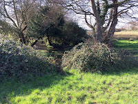 Walking back though the fields there was some birdsong, especially in this pleasant spot where the stream flows under the path. Thrushes and Tits certainly, perhaps a few others. Strangely Nore Barn Woods were quite quiet, perhaps they get disturbed too much.