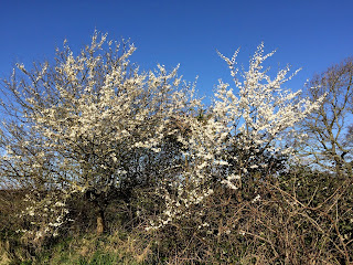 It’s busy with lots of walkers taking dogs out, not exactly peace and quiet but the views south over the Puzzles towards Hayling Island make up for it. Fortunately there’s not much birdlife on the mud for the dogs to disturb up to Conigar point where they usually turn back. The Hawthorn blossom is, however, quite magnificent, it seems to have taken advantage of the sunshine to fully form.