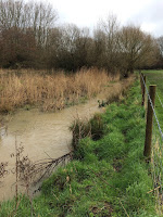 The stream that flows along Fishbourne Meadows was swollen, flooding parts of the adjacent reedbed.
