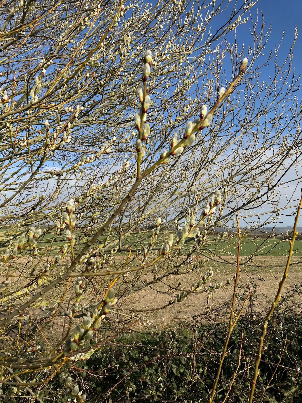 The hedges continue to become more green as the leaves develop, more catkins are appearing and for the first time and here, some pussy willow. Traditionally it appears at the beginning of Lent; in Poland it’s a substitute for palms on Palm Sunday.