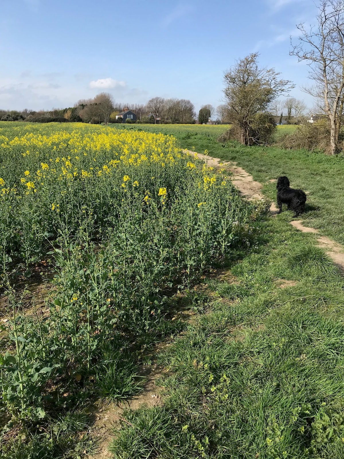 in other places nearby. Walking back through the fields this rape was well advanced, especially beside the footpath; good to see at least some crops doing well.