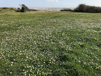 Along this stretch the daisy’s have bloomed making a carpet of flowers over the grass; more here than