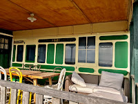Out to sea the onshore wind was driving some impressive waves that were crashing on the beach, an exhilarating place to walk. So much so that we carried on down into Selsey and back past the seaside homes made out of railway carriages. Well, they might have been once but now there’s just some traces of them left where they’ve been rebuilt leaving some parts as a feature as this snap shows.
