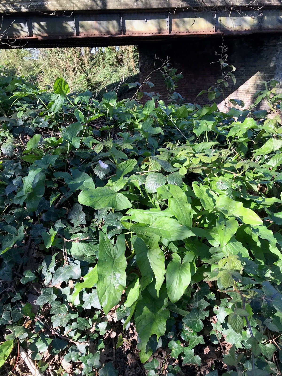 The Centurion way has surprisingly little to see at the moment, naturally plenty of Celandines and a few daffodils still staying upright but little else in flower. What is noticeable is how the Lords & Ladies are growing all over the verges as here on a bank in front of an old bridge; they’re taking over in places.
