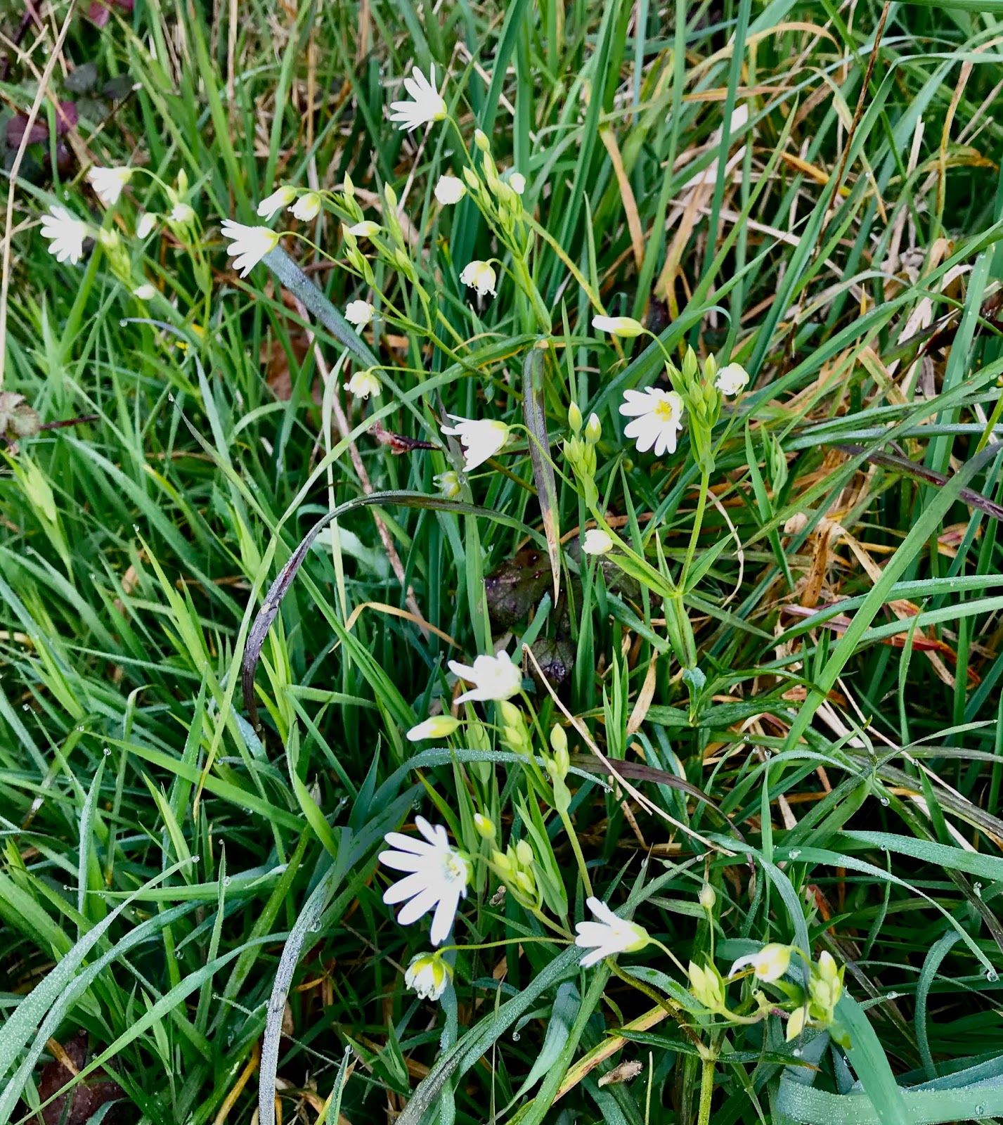 Further still we can upon a clump of Greater Stichwort, pretty little flowers with pairs of pointed leaves. Then it’s back along the path of the old railway line with the old telegraph poles to remind you of what it used to be.