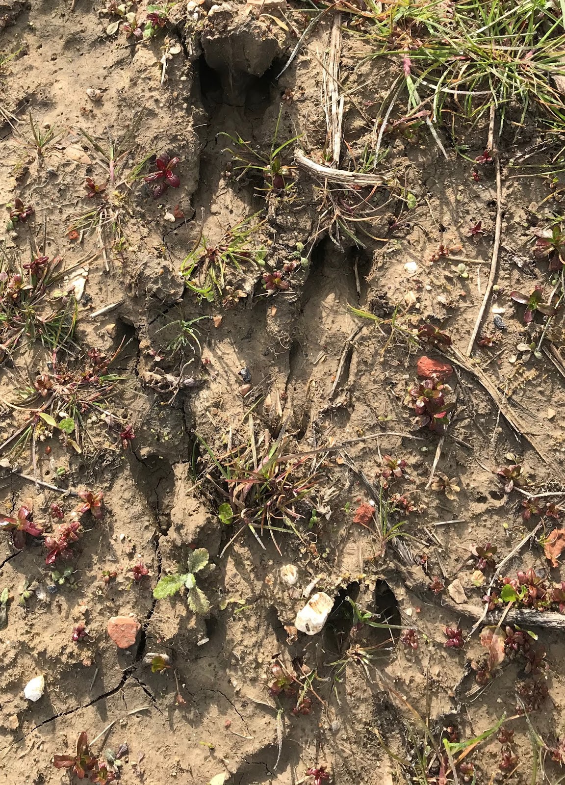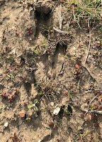 undergrowth; their loud alarm calls annoying Bonnie. A bit further on we disturbed a Fallow deer which jumped up and ran off just a few yards away. It had been keeping low and quiet then suddenly lost its nerve and ran off, if it had stayed put we’d have missed it. Quite likely this was not the only one as we saw several tracks made by them as in