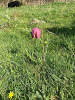 Finally we saw this pretty little flower that looked a bit like a lantern; there were single plants dotted around the meadow. It’s a Fritillary or Chequered Daffodil and according to the Flora of Sussex, it’s quite scarce.