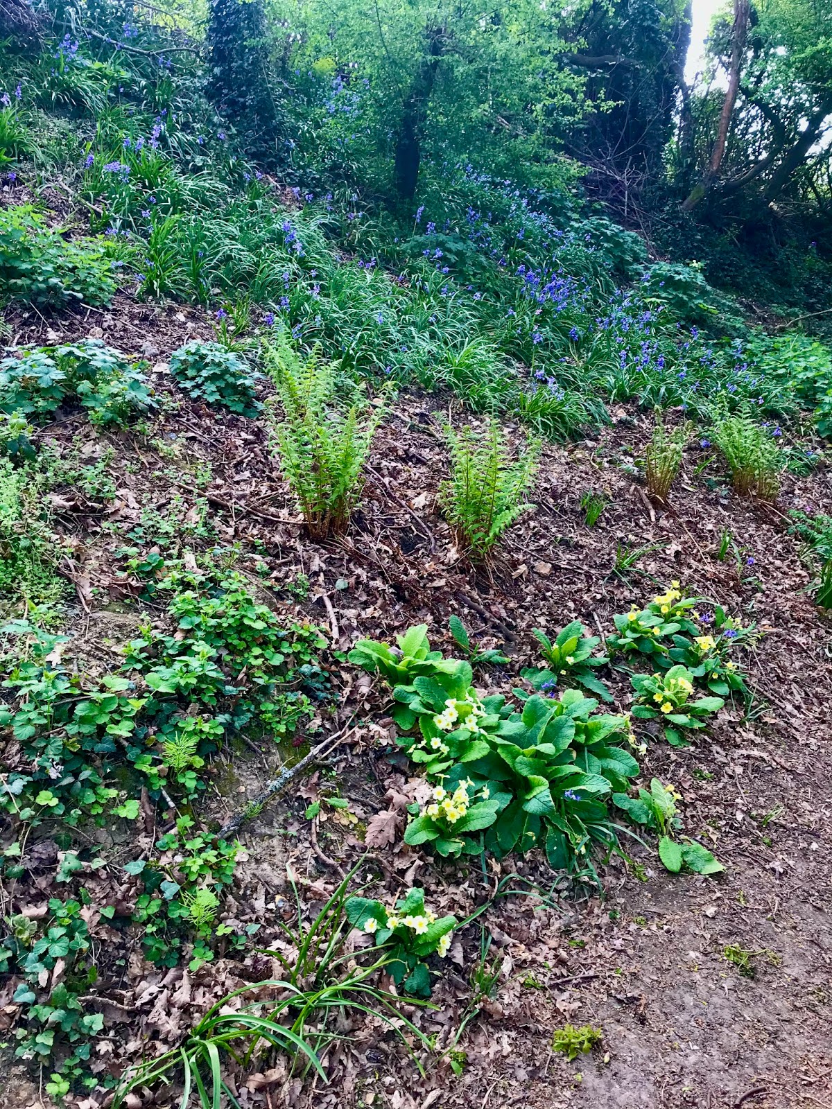 The flowers had not changed much along the pathway, the bluebells were still in good form together with some Primroses as can be seen in this snap.