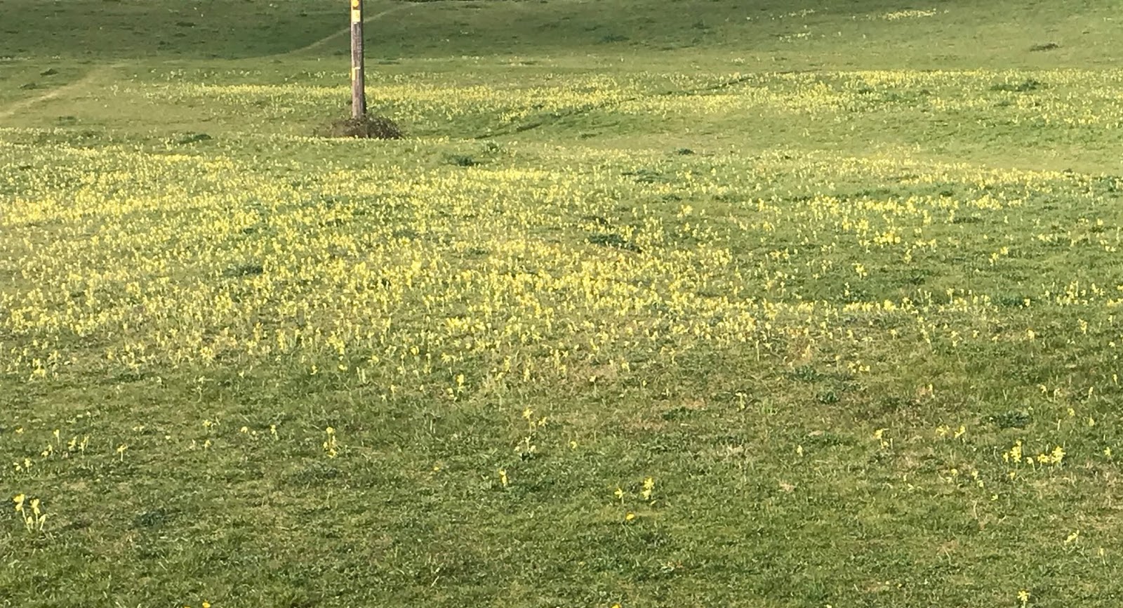 The highlight was to see the Cowslips that now cover the earthworks at Hunters Race. They are known to like meadows and this one certainly suits them!
