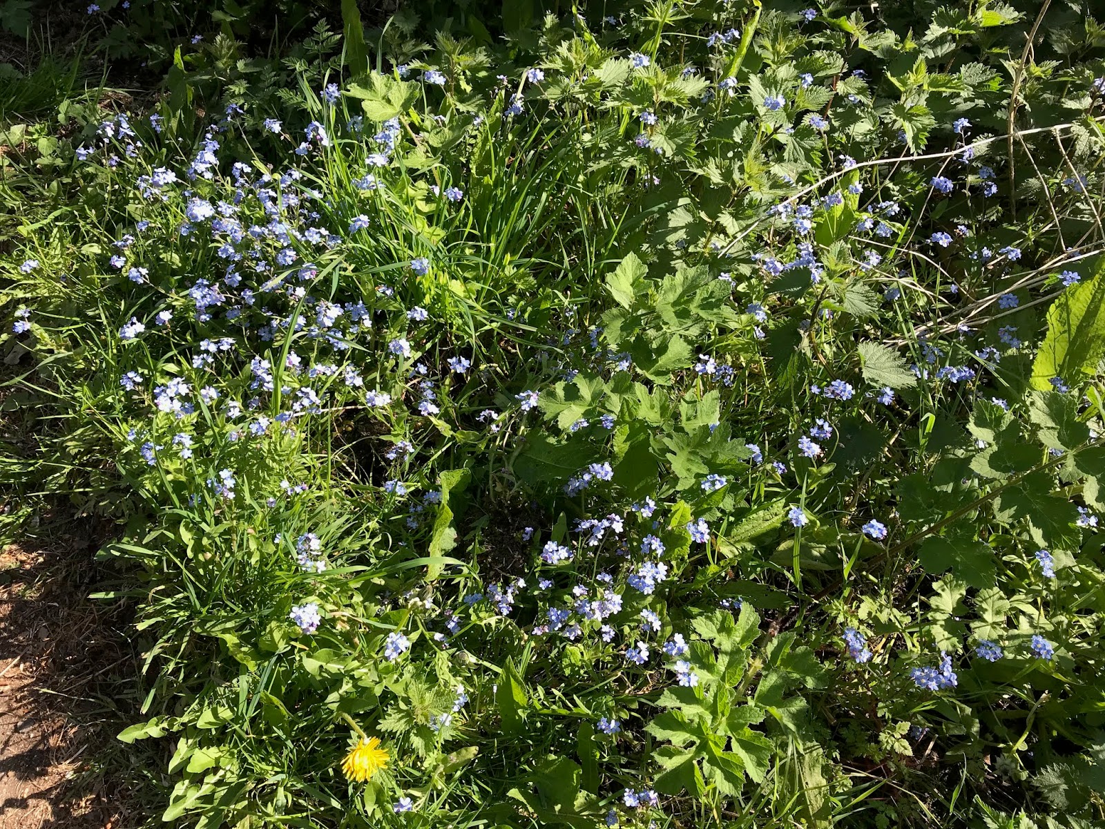 The blossom and bluebells are starting to decline now but these forget-me-nots are in full bloom providing a splash of colour on the old railway embankment. Shame that they look like cultivated ones rather than a wild variety.