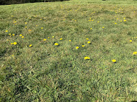 The flowers are really blooming now; the dandelions are rampant infesting so many of the fields. So are the buttercups, much more dainty but just as profuse. Together they give a distinct yellow tinge to the grassland.
