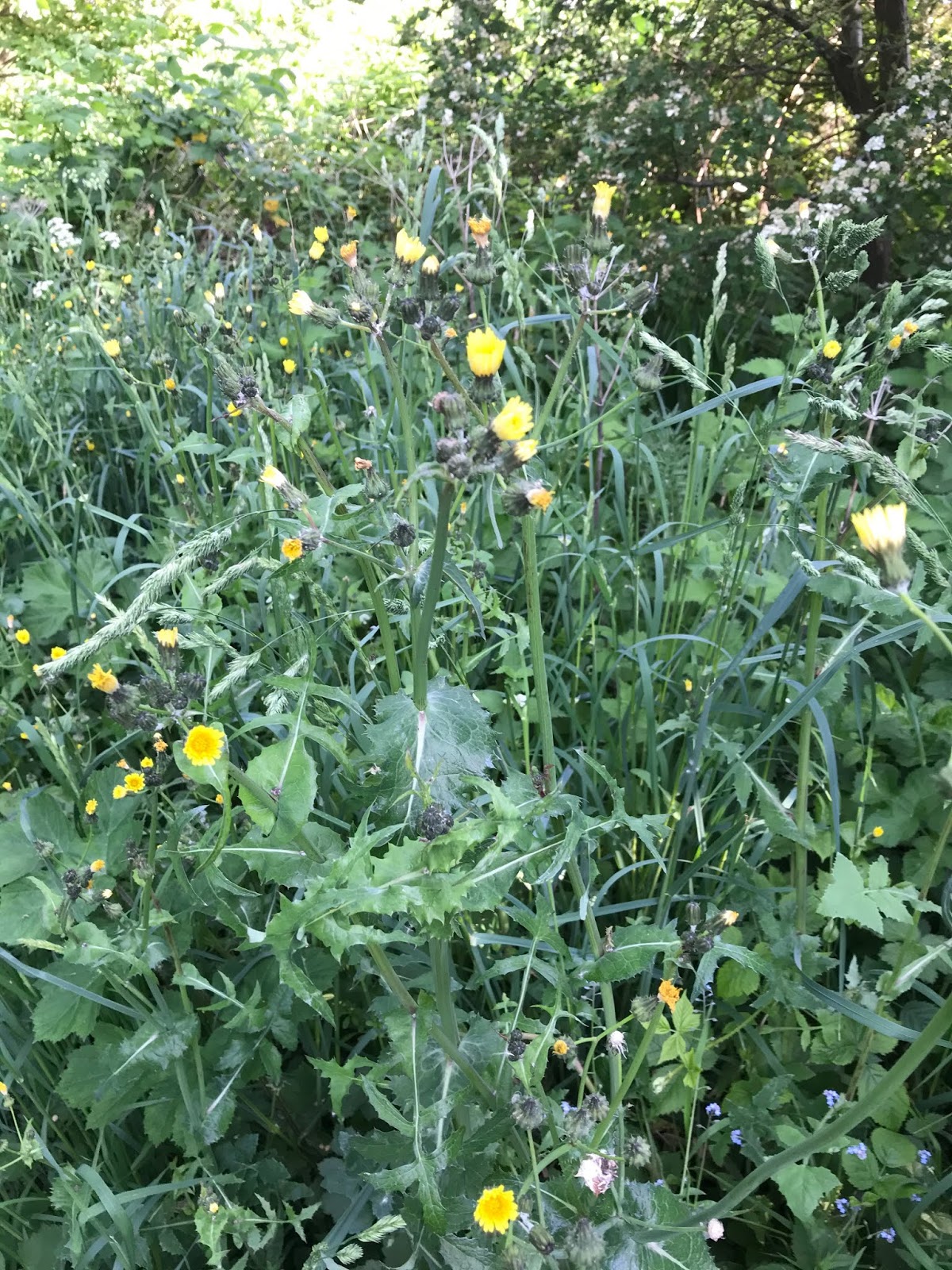 Just coming into flower are the Sow-Thistles which also have numerous variants. It seems to be the Smooth Sow-Thistle that’s popping out on all sorts of ground, apparently it’s a weed of cultivation that like bare ground. They are part of the Daisy family so related to Ragwort and dandelions.