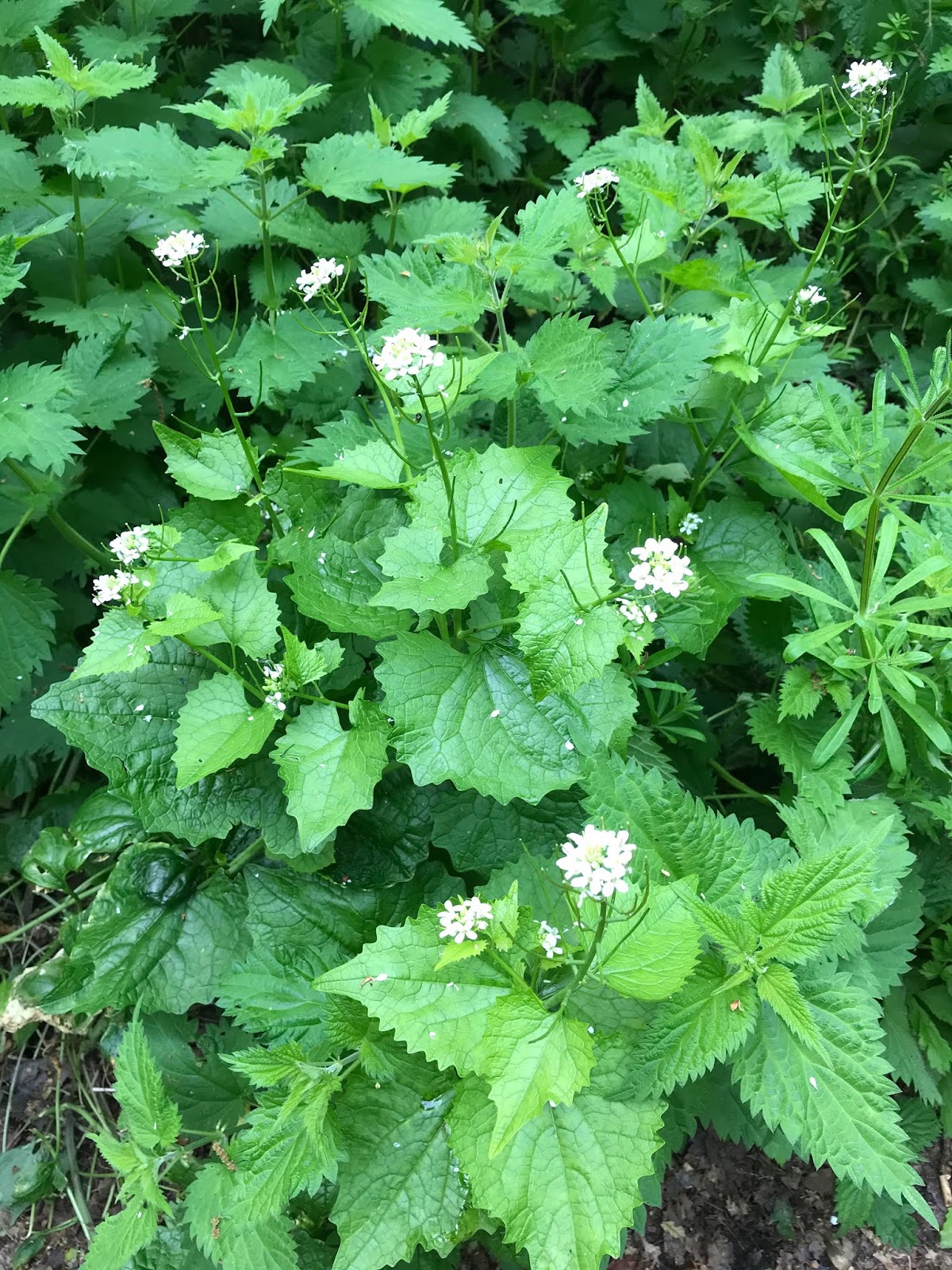 Also widespread but easier to identify is Garlic Mustard with it’s large green leaves but small white
