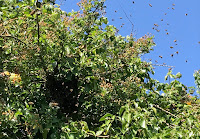 Just after leaving our car at St Marys in Chidham we came upon this swarm of bees in a tree alongside the path. It’s not surprising as there are several hives nearby and they have had plenty of time to increase in numbers sufficiently to support swarming. I hope they either find a new home or the Bee Keeper finds them and gives them a home, we need bees now more than ever!