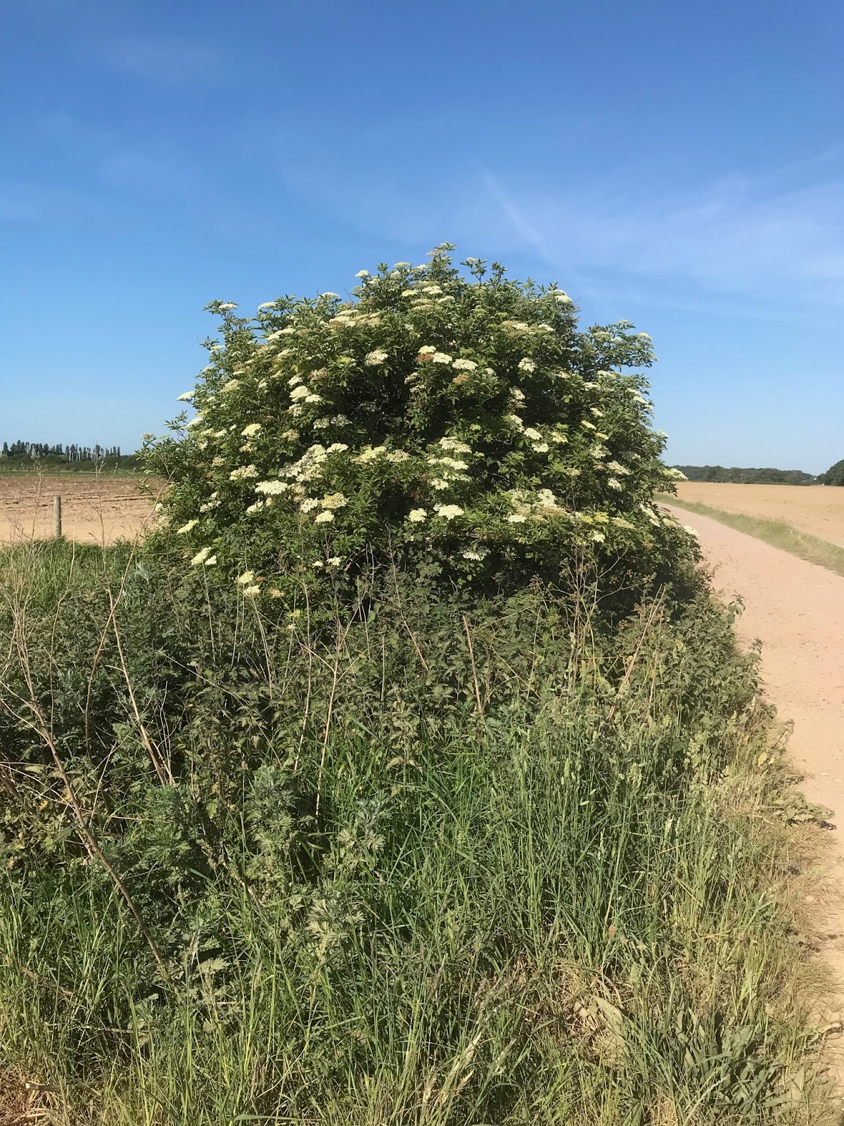 Not many new flowers out but the Elder bushes that are just about everywhere are now in full bloom. Maybe we should be dusting off the Elderflower wine recipes.