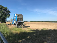 gardeners want to hear. On the recently planted potato fields they’ve laid out pipes and the giant mobile waterer ready for use. It’s difficult to see this crop thriving without a significant amount of irrigation unless the weather