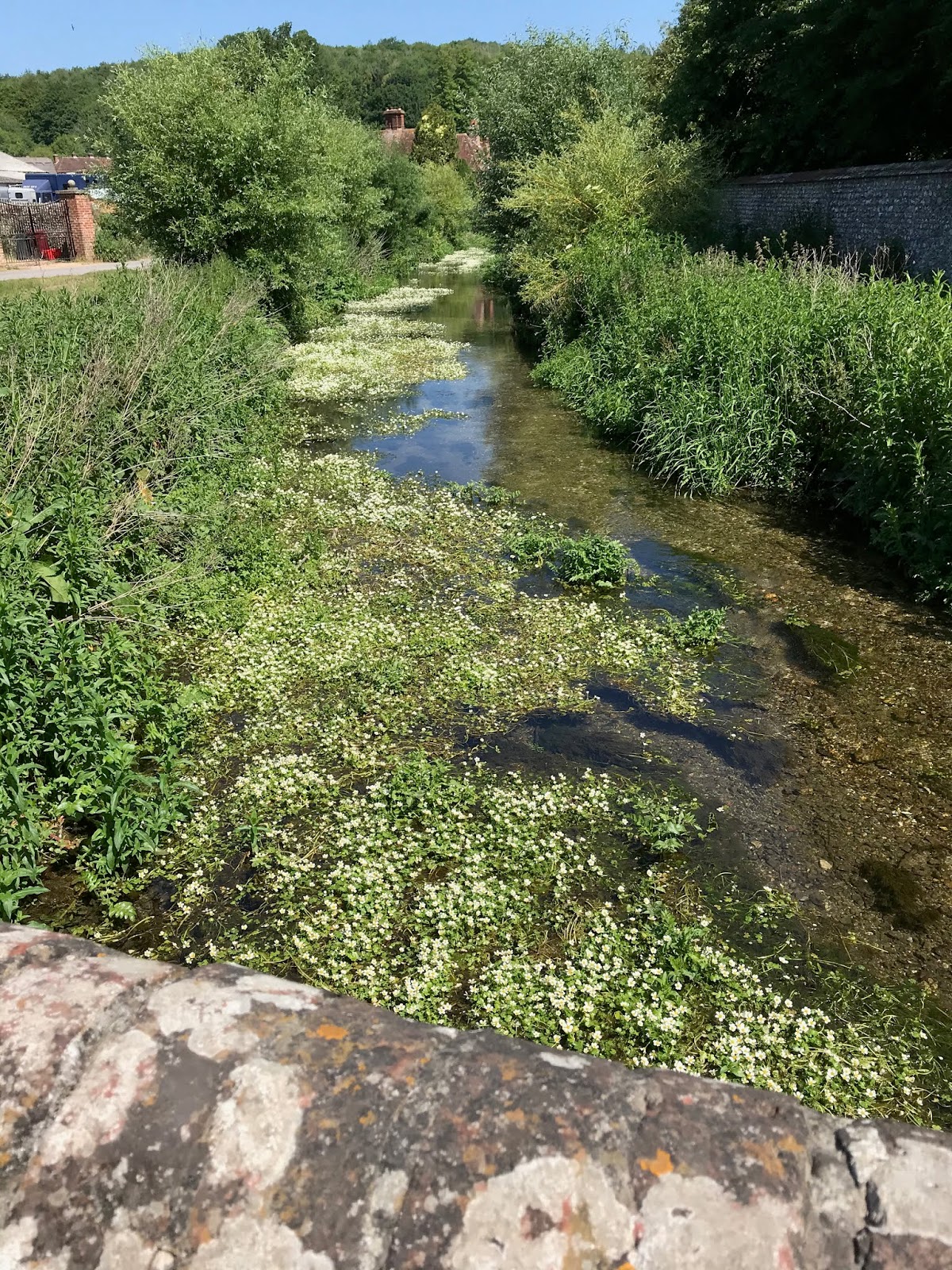 Yet another bright blue sunny day, hardly a cloud in the sky but with a light breeze to make walking a pleasure. A longer walk was preferred today but some respite from the sun was called for so the Lavant walk as far as The Rubbing House then back via West Dean was the order of the day. It took a bit longer than expected but that was Bonnie’s fault as she kept on wanting to have a swim in the Lavant which was still flowing strongly.