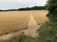 At 8:30 there is only one space left in front of the village shop, too early for coffee, must be all these elderly men buying a newspaper. Never the less we parked the car and headed off. Once in the first field walking away from the village it was clear that harvesting had started. For some time the Barley, in particular, seemed to be ready with a pronounced droop and it’s certainly been dry enough. This was the only field though, none anywhere nearby or on the way here.