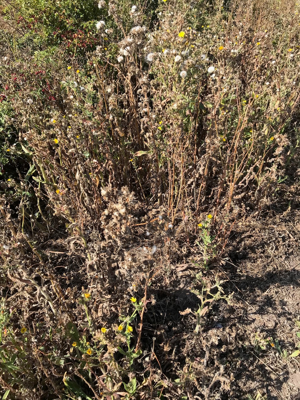 The dryness was particularly evident once on the coastal path, probably due to the large number of people that have been coming here due to the Pandemic. The ground was parched & dusty, the grass dried out and many of the plants that had been flourishing desiccated. In particular these Bristly Ox-Tongue were dried out together with the Hogweed which was well after it’s prime.