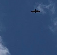 Above the songbirds were still quite quiet but this Buzzard identified itself by calling. Later on by the church it flew very low overhead letting us have a wonderful view of it’s markings. Needless to say by the time I’d got my phone ready to take a picture it had risen to a height where they were less distinguishable.