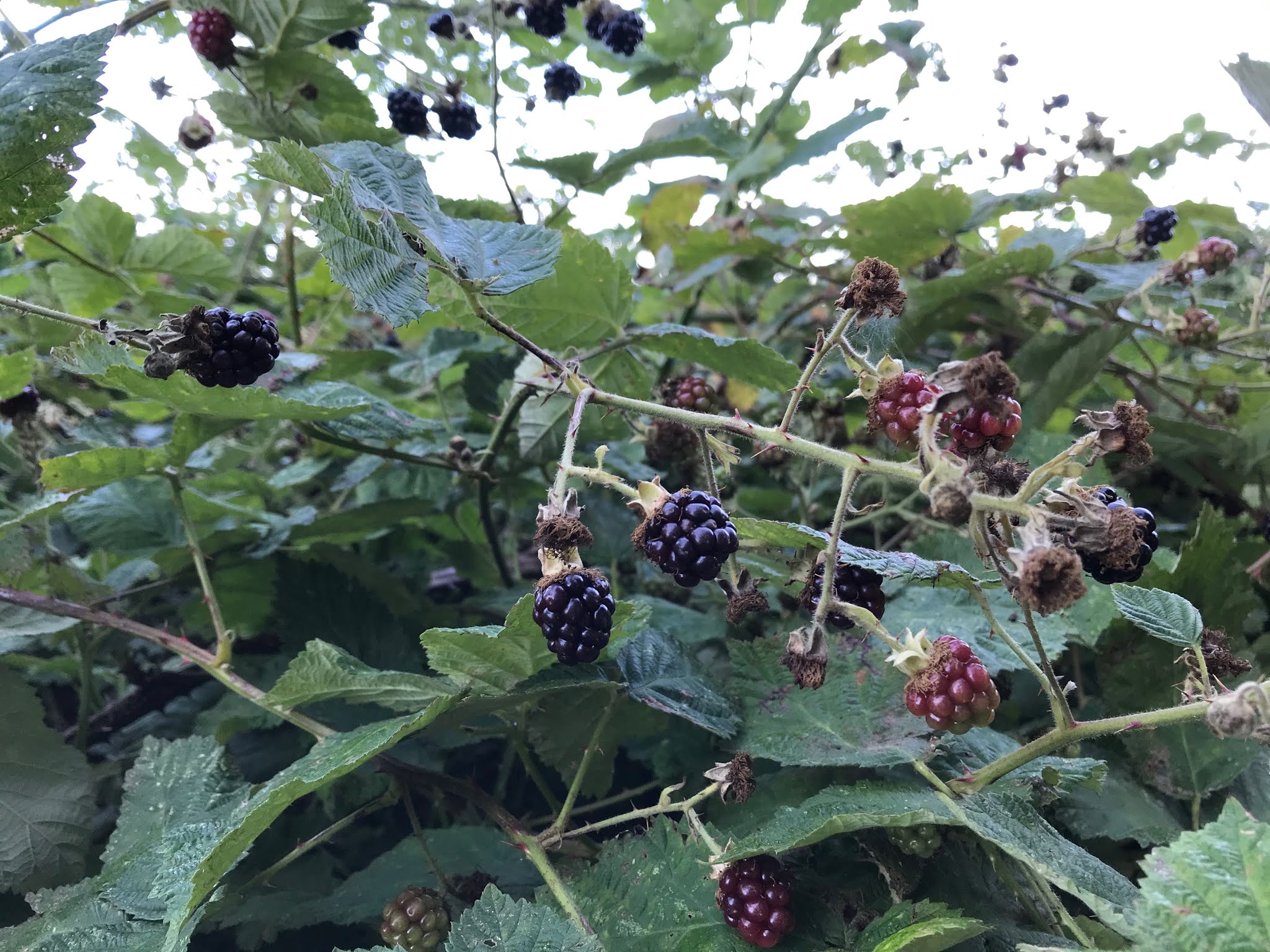 The blackberry bushes are laden with fruit but there are lots of foragers so the accessible bushes have few ripe berries. Look a bit higher, just out of reach and there’s lots of attractive ones!