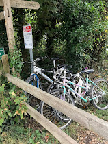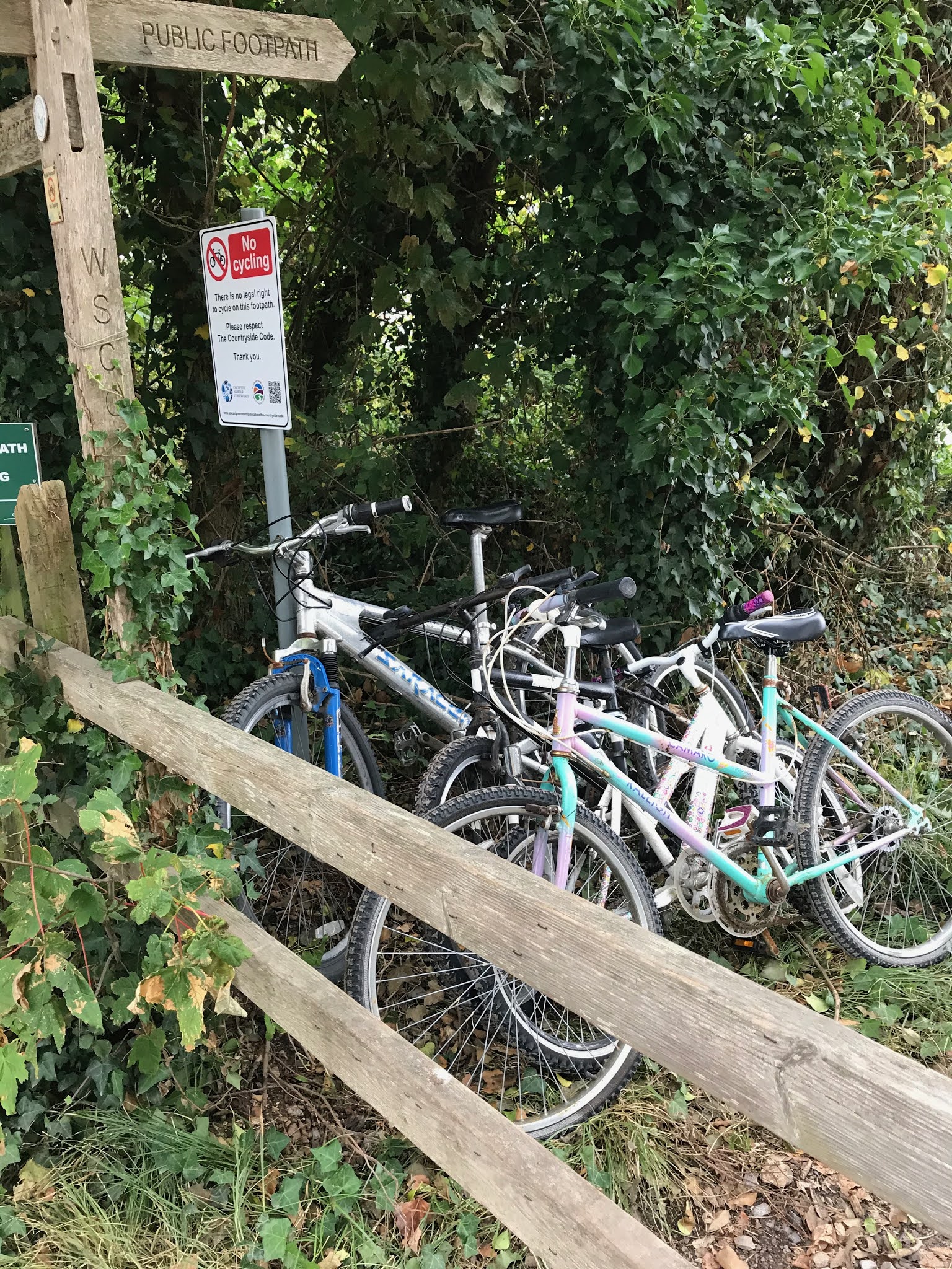 Bikes and footpaths dont make good bedfellows and all too often selfish riders upset walkers. However here a group, a family perhaps, were observing the rules at the end of Ellen Nore lane. Well, I hope they’s only cycled down the lane and not come from Itchenor!