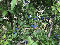 Fruit was very much in evidence, certainly plenty of blackberries still around for those willing to pick them. I was pleased to see lots of Sloes and picked a poo bag full; they seemed ripe enough almost falling off the bushes. Elsewhere there were plenty of rose hips that look so tempting together with a couple of apple trees that seem out of place but were bursting with fruit.