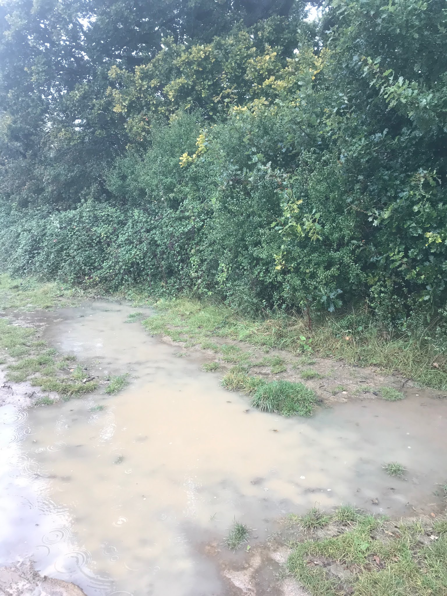 This snap of the farm track is reminiscent of the conditions we had at the beginning of the year when it was underwater for weeks at a stretch. Hopefully it will drain away this time as the soil is much dryer and needs a good soaking.