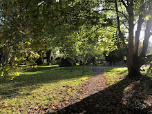 In the soft sunlight of early morning the trees near the church are showing their Autumn hues, if only it