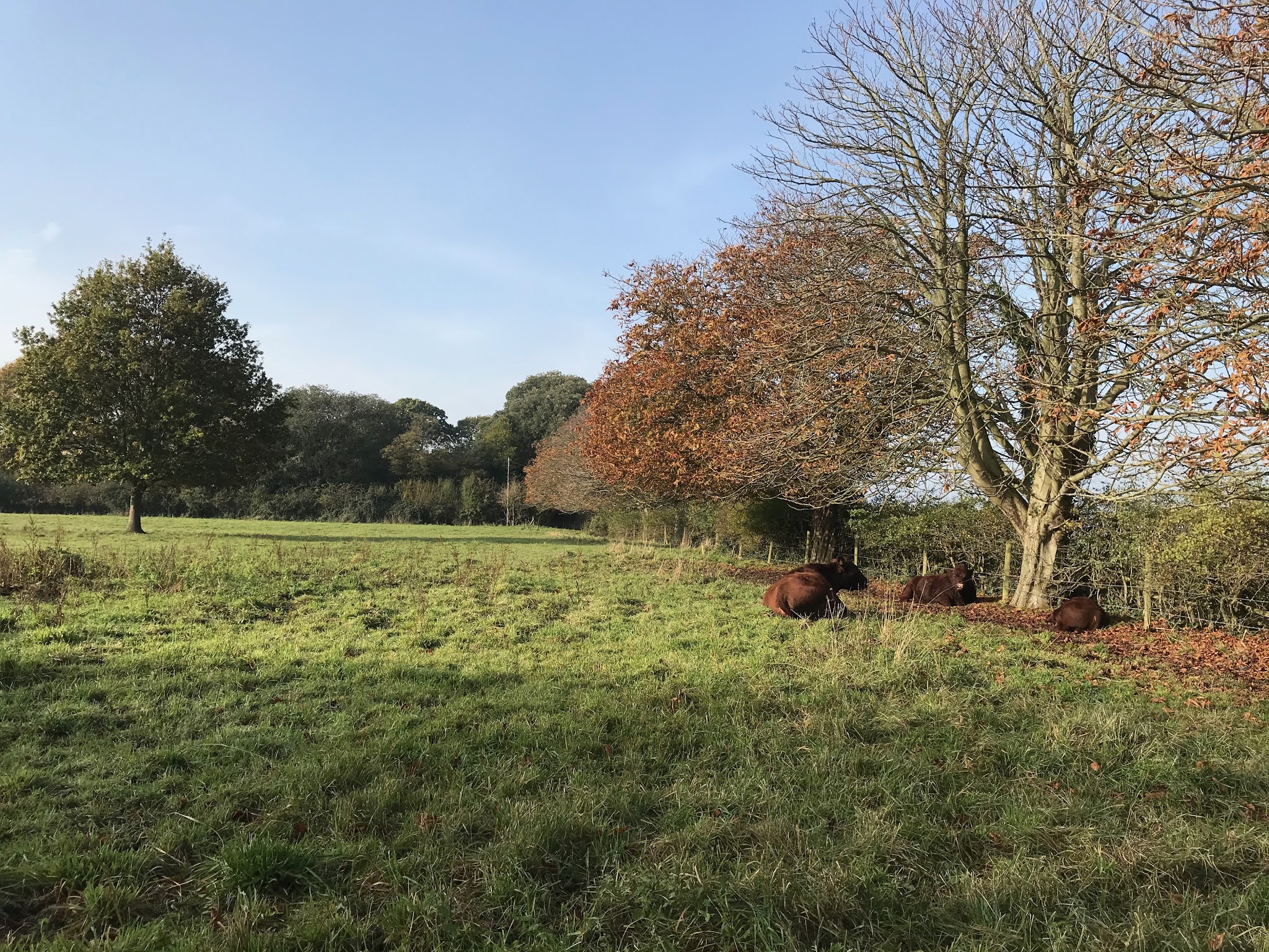 By the farm the progression of the season was most noticeable as can be seen here. Some of the trees, such as these Horse Chestnut’s had completely lost their leaves and looked quite wintery. Others, like the one on the left still had all their leaves although they were now in a minority. Here and in the lane fallen leaves carpet the ground, flying in the air as you walk through them.