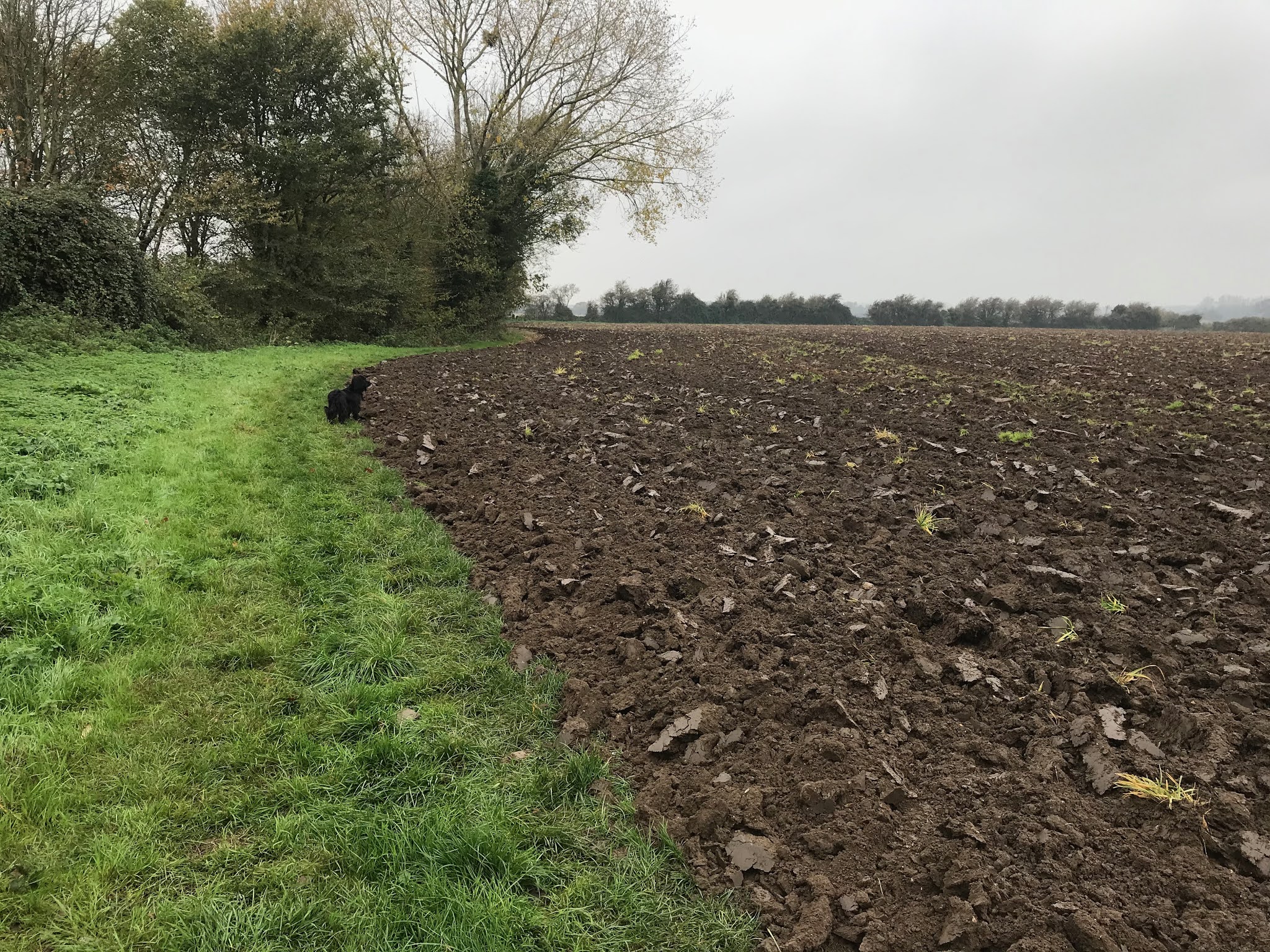 The field just passed the church has been thoroughly ploughed, so much for min till! Presumably this is to control the weeds which were very evident, there are still many tufts of grass in places that have not been buried. Amongst all this desolation there must be a few worms or seeds on the surface as there were a great number of Pied Wagtails about. All over the field little grey shapes were bobbing about with black caps and bibs, more than I’ve ever seen in one place before. Why most seemed to be female