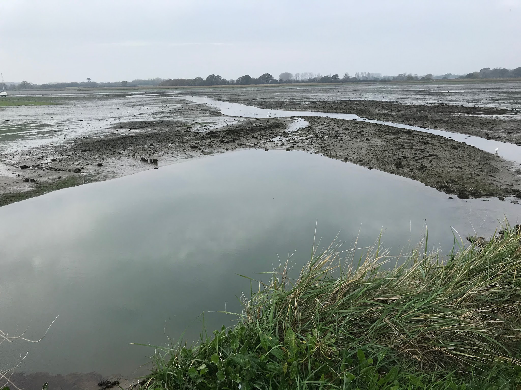 In contrast to yesterday today is grey, no blue sky, no sunshine, just stillness and mistiness. It’s low tide so there’s the prospect of seeing some wildfowl even though it’s a neap tide.